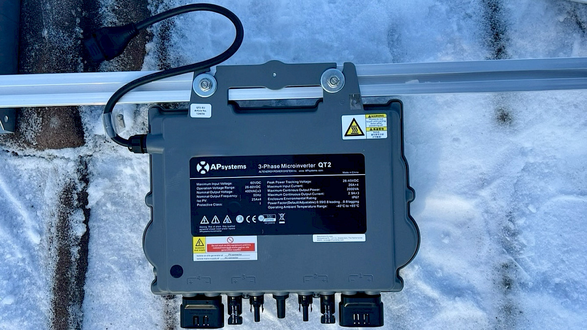 Mikroinvertteri kuvattuna asennuspäivänä kohteen katolla.